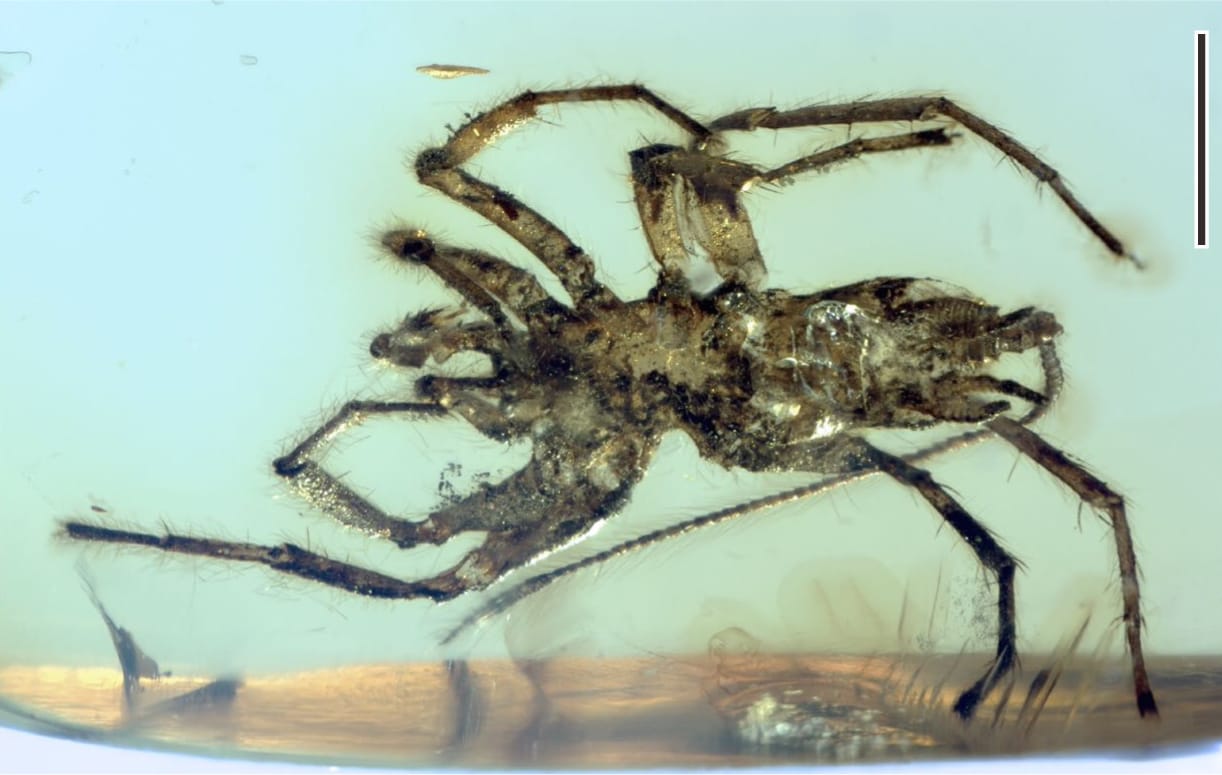 The articles focused on four specimens of a new species, called Chimerarachnae yingi. “Chimera” means “a mixed animal,” “arachnae” refers to the arachnid group, and “yingi” is in honor of the person who found the specimens. All four specimens were found in amber in Myanmar and date back to the mid-Cretaceous (around 100 million years ago).