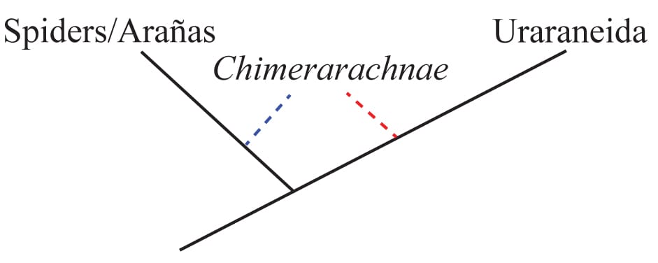 Each research group looked at the specimens and ran an analysis of evolutionary relationships to see where this new species fits in. One research group found that this species is more closely related to spiders. The other research group found that it is more closely related to an extinct group of arachnids called Uraraneida.