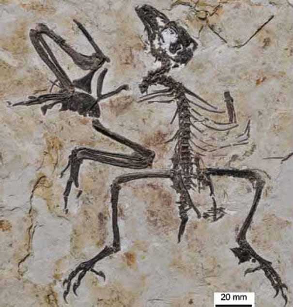 Based on bone proportions, the researchers determined that both specimens were juveniles. The feathers are very well developed, indicating that these young birds were precocial—able to move around soon after hatching. Because the feathers are so well preserved, their coloration can be inferred: brown and pale/white, likely arranged in bands across the wing.