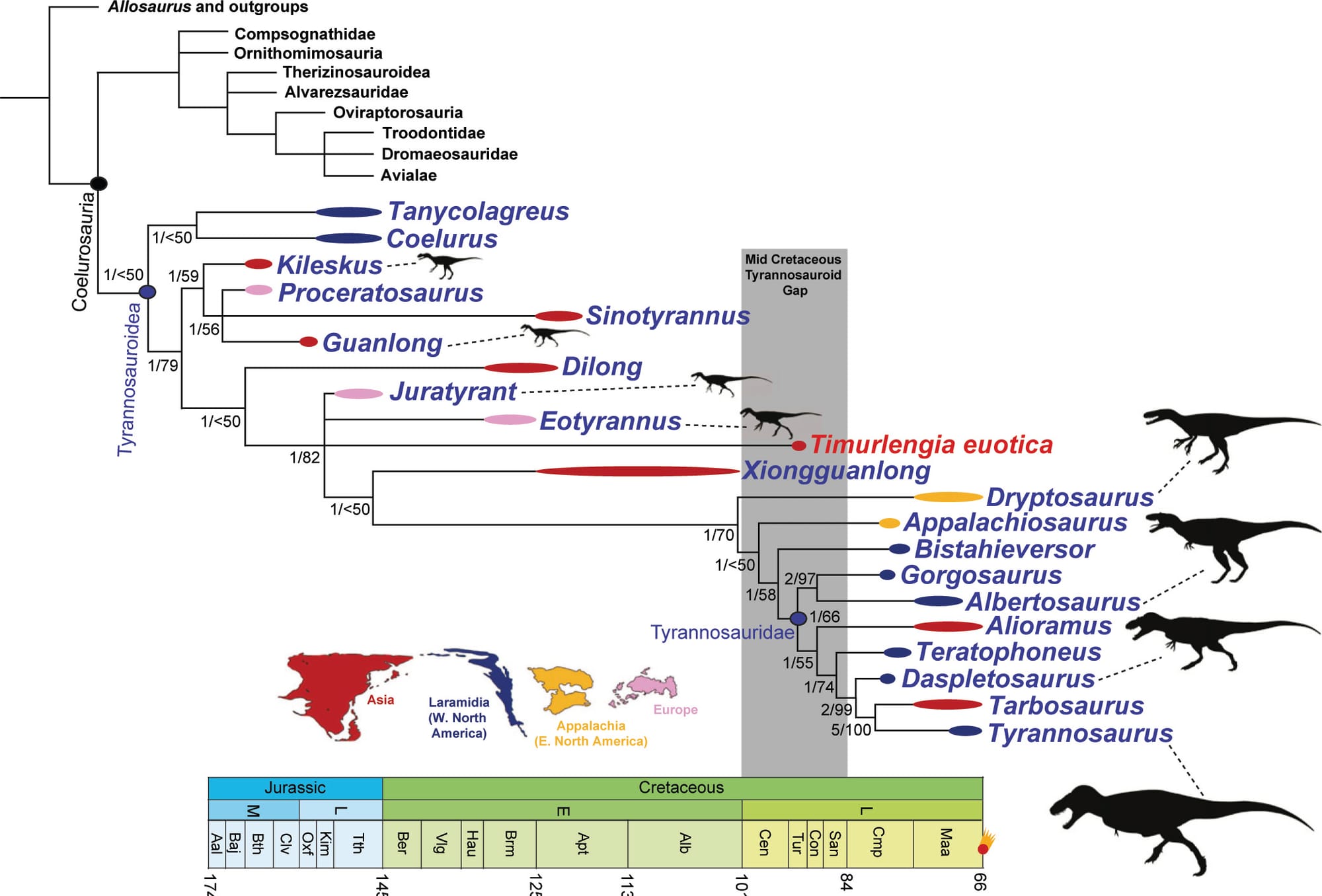 Continuemos con el [artículo] escrito por Brusatte y otros en la revista PNAS. Estos autores describen un tiranosaurio recientemente descubierto en Uzbekistán.