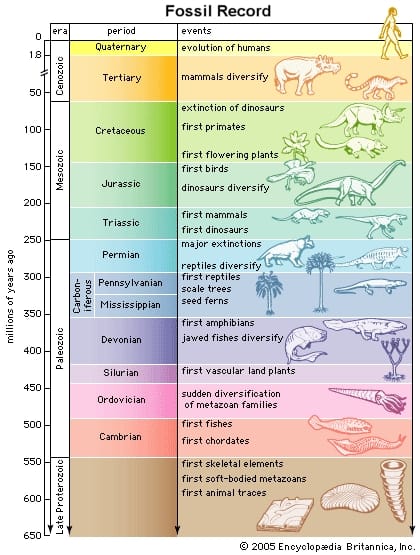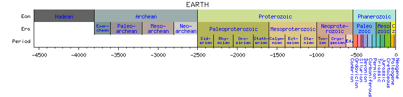 El Monstruo de Tully se encuentra en piedras que son del Carbonífero, alrededor de 300 millones de años atrás. Eso es aproximadamente a mediados de la Era Paleozoica (~540-350 millones de años atrás), la era anterior al Mesozoico (famoso por los dinosaurios). Notarás que contamos el tiempo hacia atrás. Esto lo hacemos porque para encontrar fósiles tenemos que excavar hacia abajo. Si la superficie de la tierra es el tiempo presente (= 0 millones de años atrás), al excavar hacia abajo viajamos al pasado.