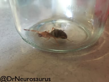 Por la noche vimos ratones canguro y murciélagos, aunque no pude fotografiarlos. En el campamento también tuvimos visitas: un ciempiés de 8 pulgadas que capturamos y llevamos afuera.
