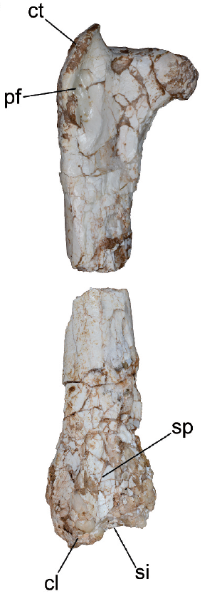 A year later, in December 2023, a [study] came out describing a new fossil from the Pliocene of Argentina. The fossil was an almost complete right femur of a bird. Based on features of the bone, including the location of a pneumatic opening (an opening in the bone for the avian air sac system), the authors were able to identify the bone as a New World Vulture (Cathartidae). Other features allowed the authors to identify it as belonging to the genus Vultur, which only has 1 species in modern day (the Andean Condor, Vultur gryphus).